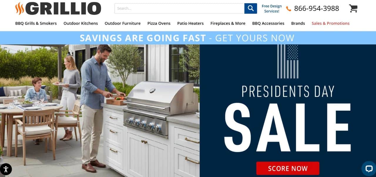 Grillio‘s specialty is high-ticket outdoor cooking equipment and the overall design of complete kitchen systems. The company focuses on selling premium gas grills, flat-top griddles, hibachi-style grills, pizza ovens, and modular outdoor kitchen systems.